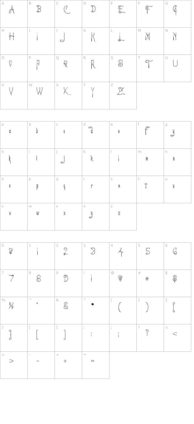 A Charming Font Outline Character Map