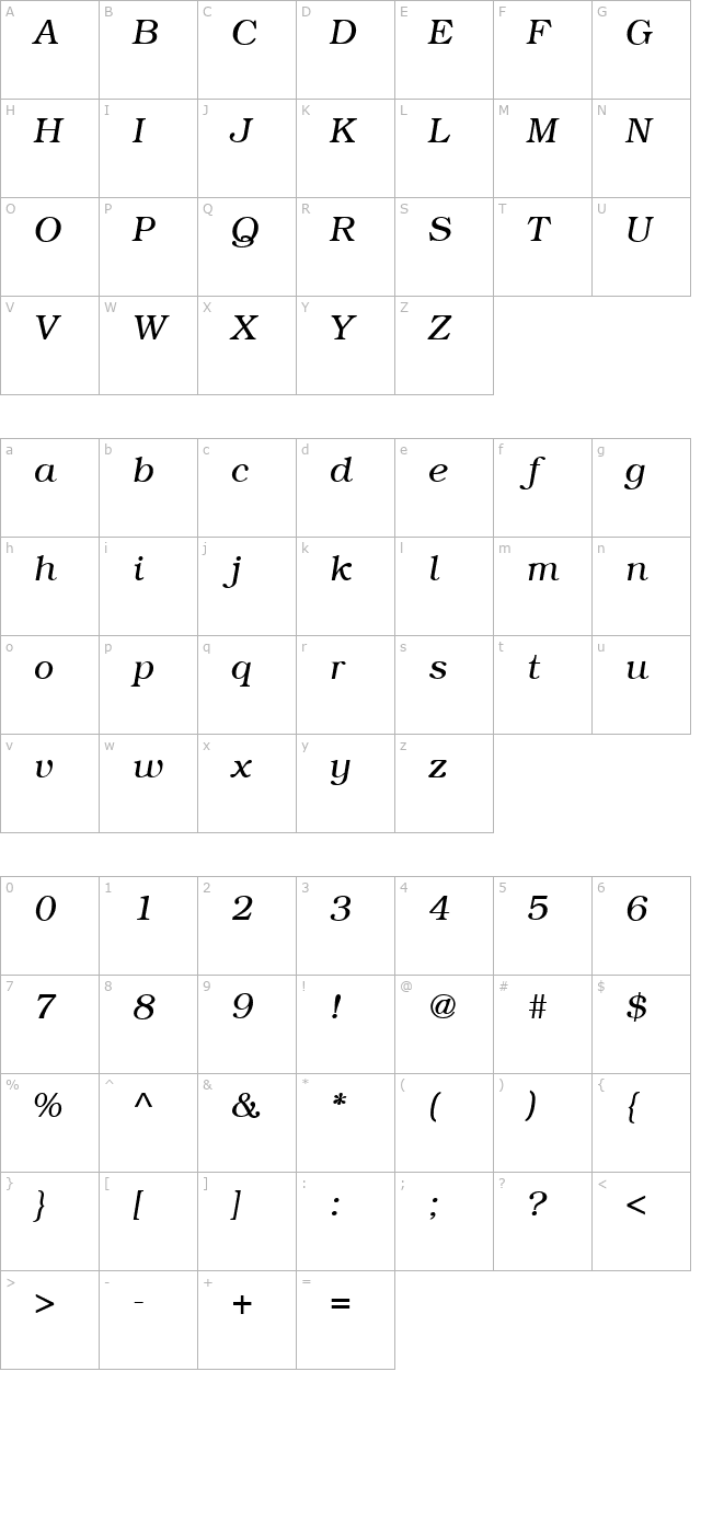 Bookplate Italic Character Map