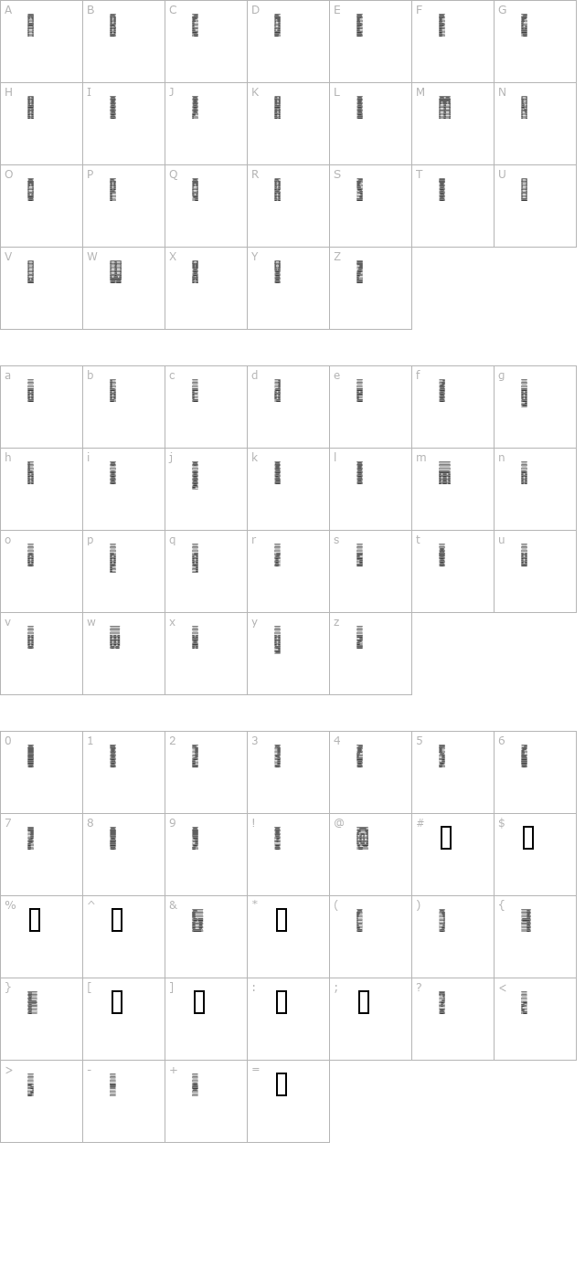 deeter-condensed character map