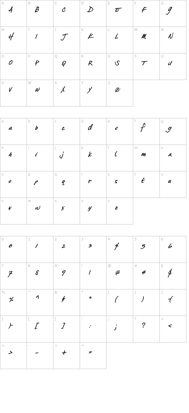 DuffyScript Bold Character Map
