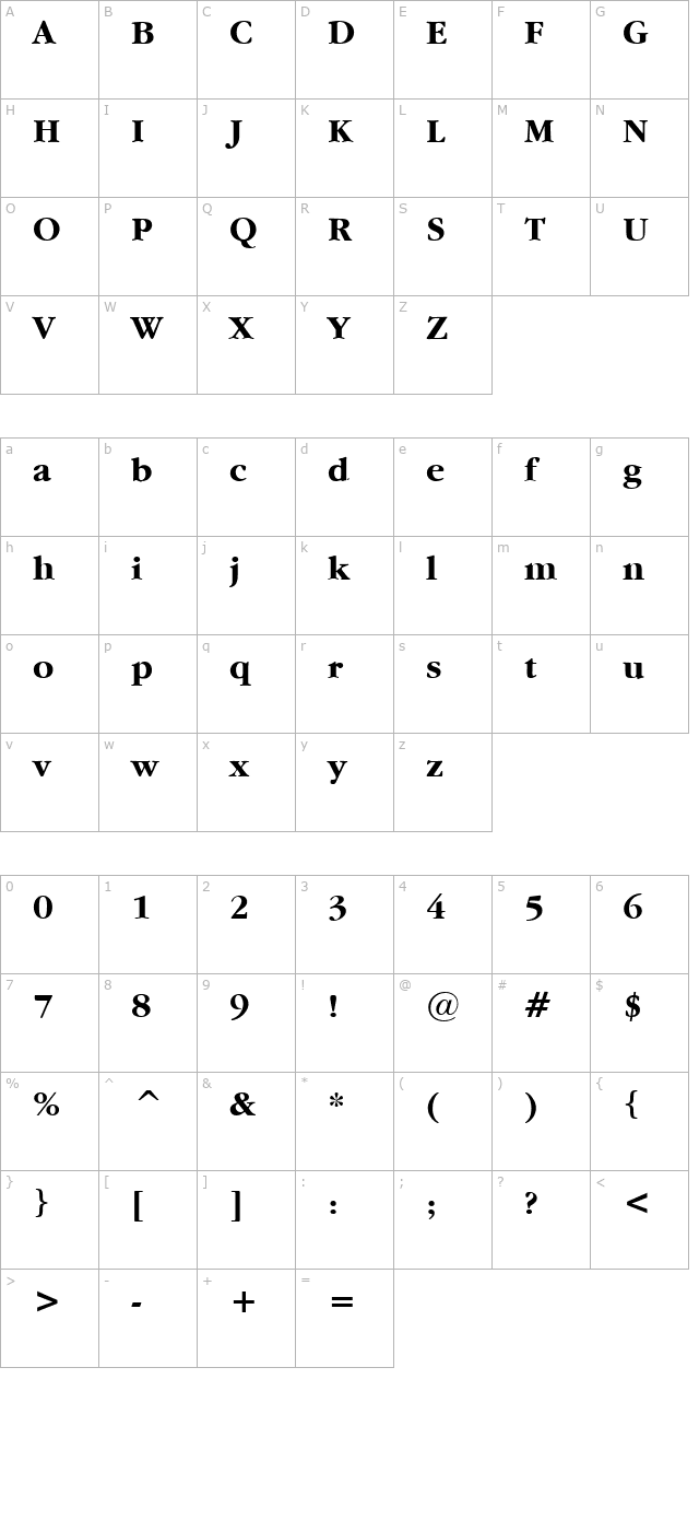 Garamand Bold Character Map