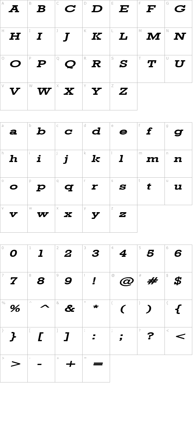 Geo 986 Extended Bold Italic Character Map