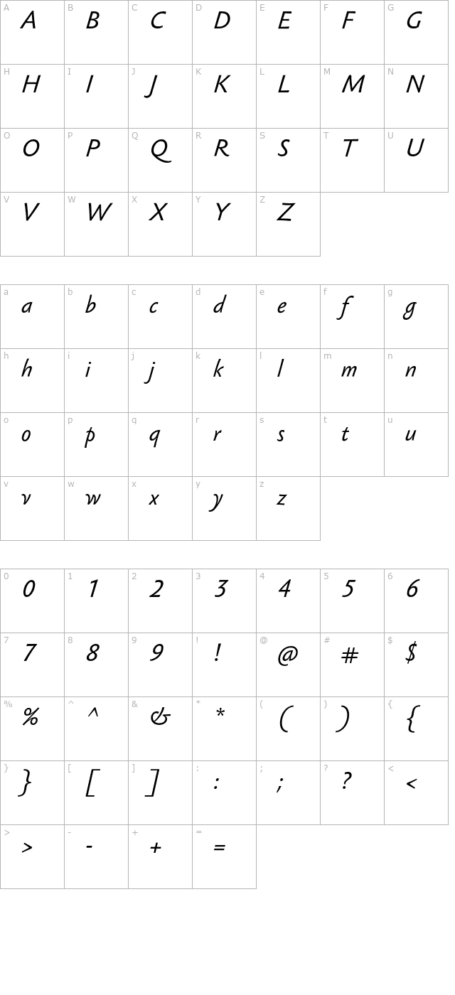 SebastianTextUCF Italic Character Map