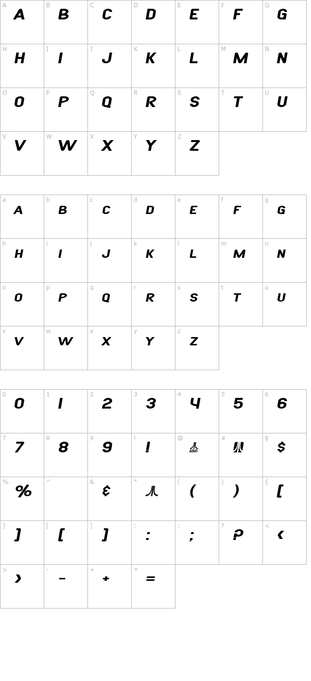 SF Atarian System Extended Bold Italic Character Map