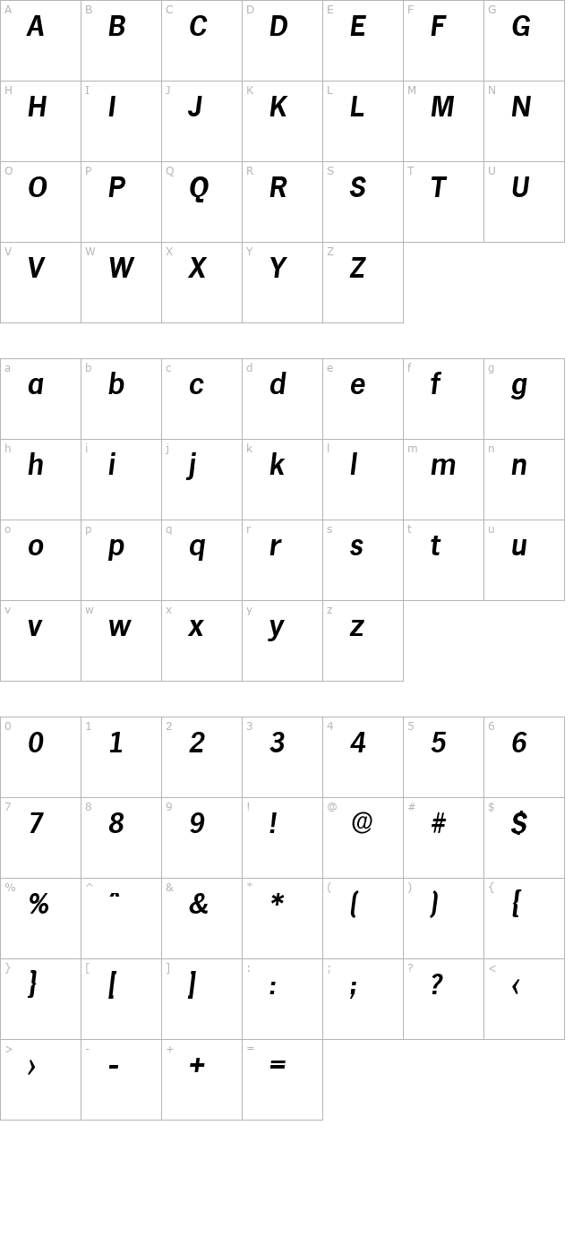 stephenbecker-bold-italic character map