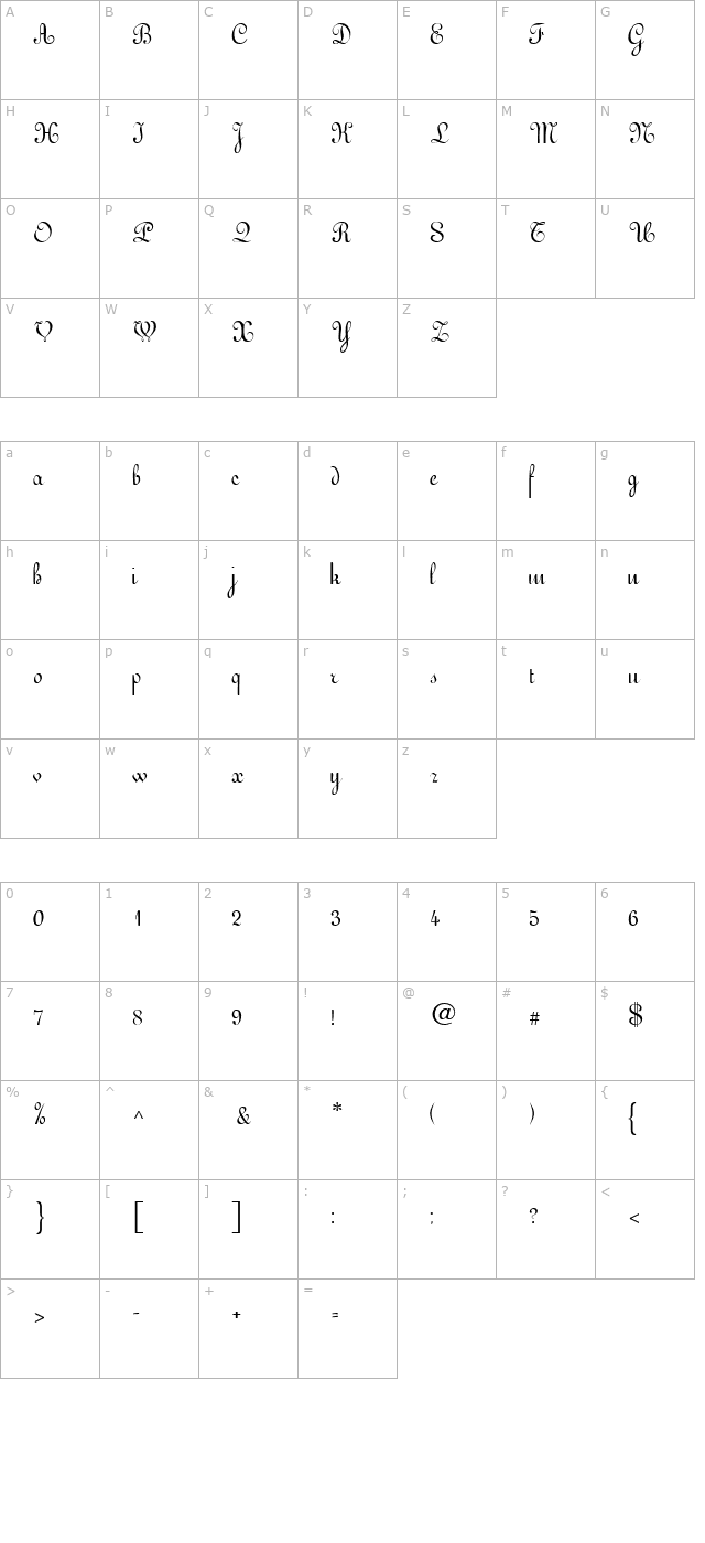 ArabescoScript Character Map