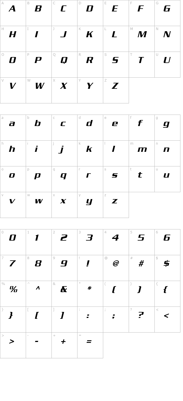 Boost SSi Italic Character Map