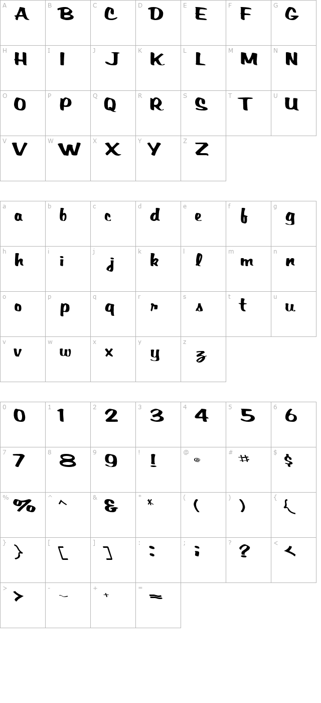 BrackenScriptSSK Bold Character Map