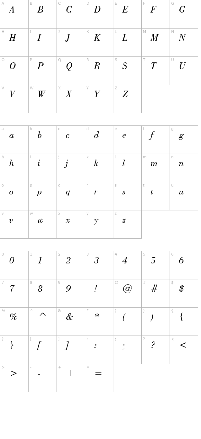 Capelli Italic character map