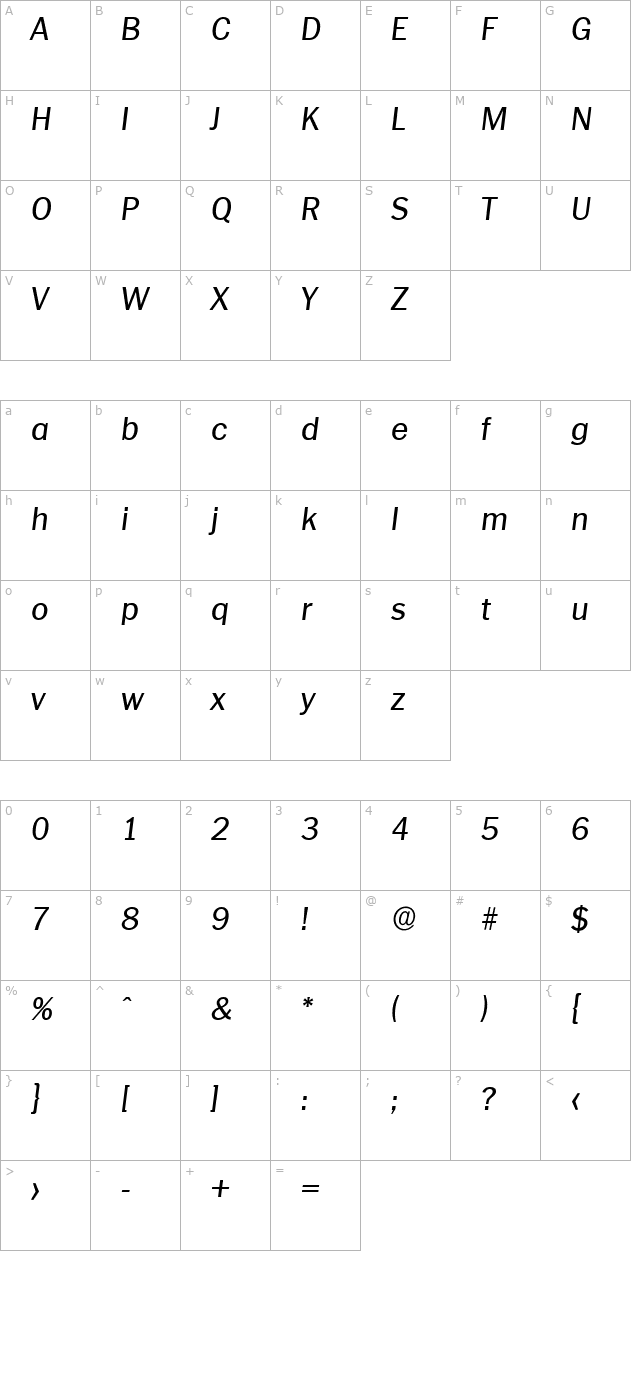 CarlBecker Italic Character Map