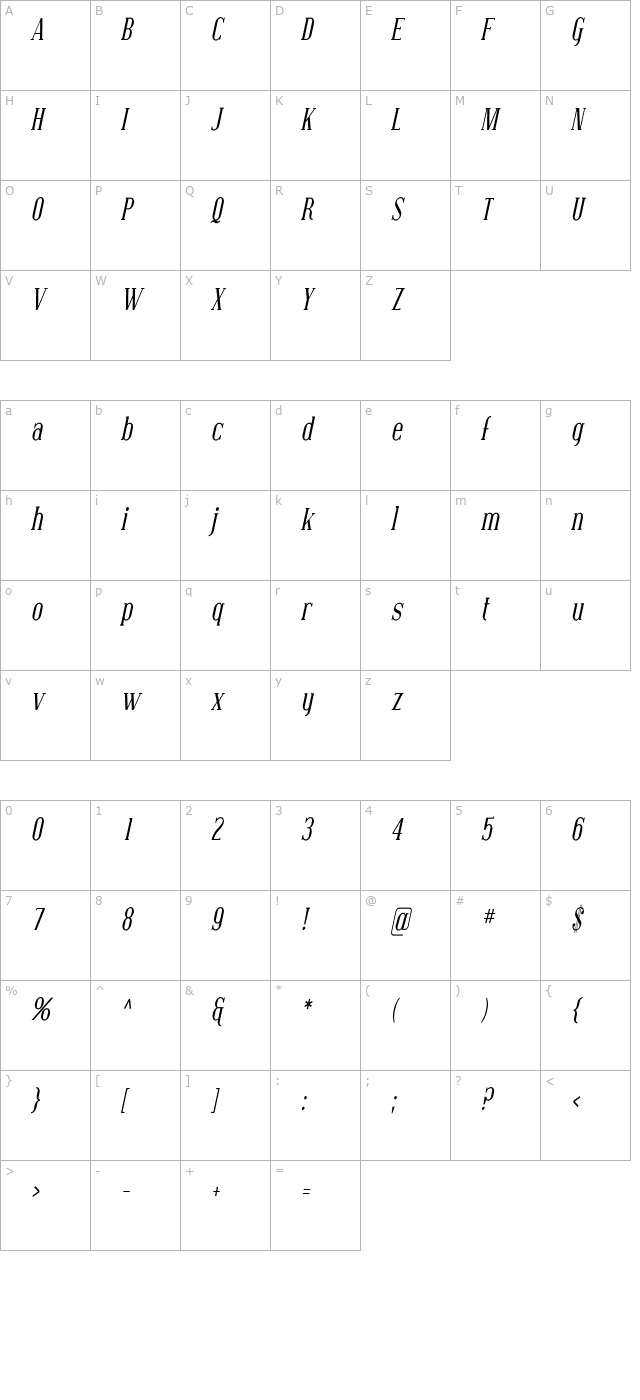 Covington Cond Italic Character Map