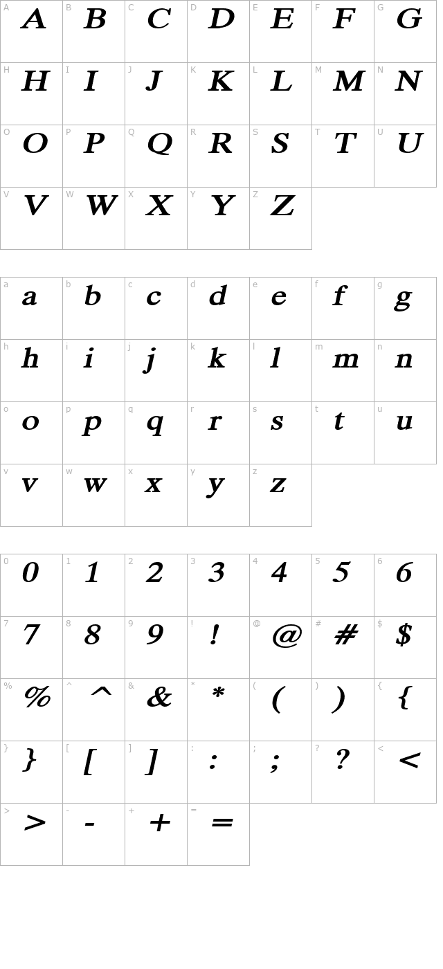 Duke Extended BoldItalic character map