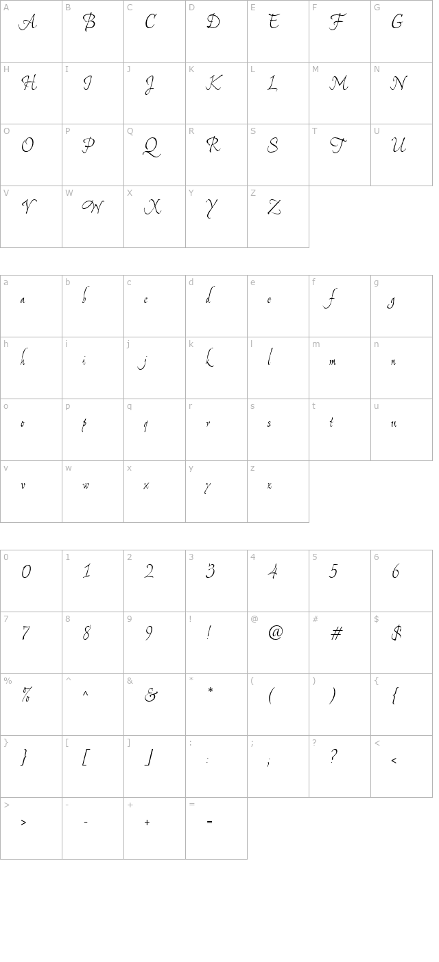 DyanaTallUT Italic Character Map