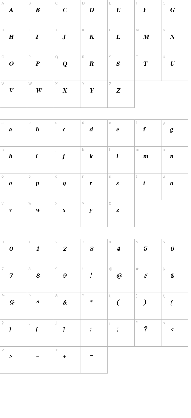 EucrosiaUPC Bold Italic Character Map