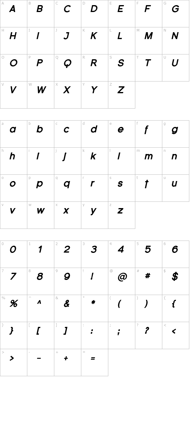 Florencesans Black Italic Character Map