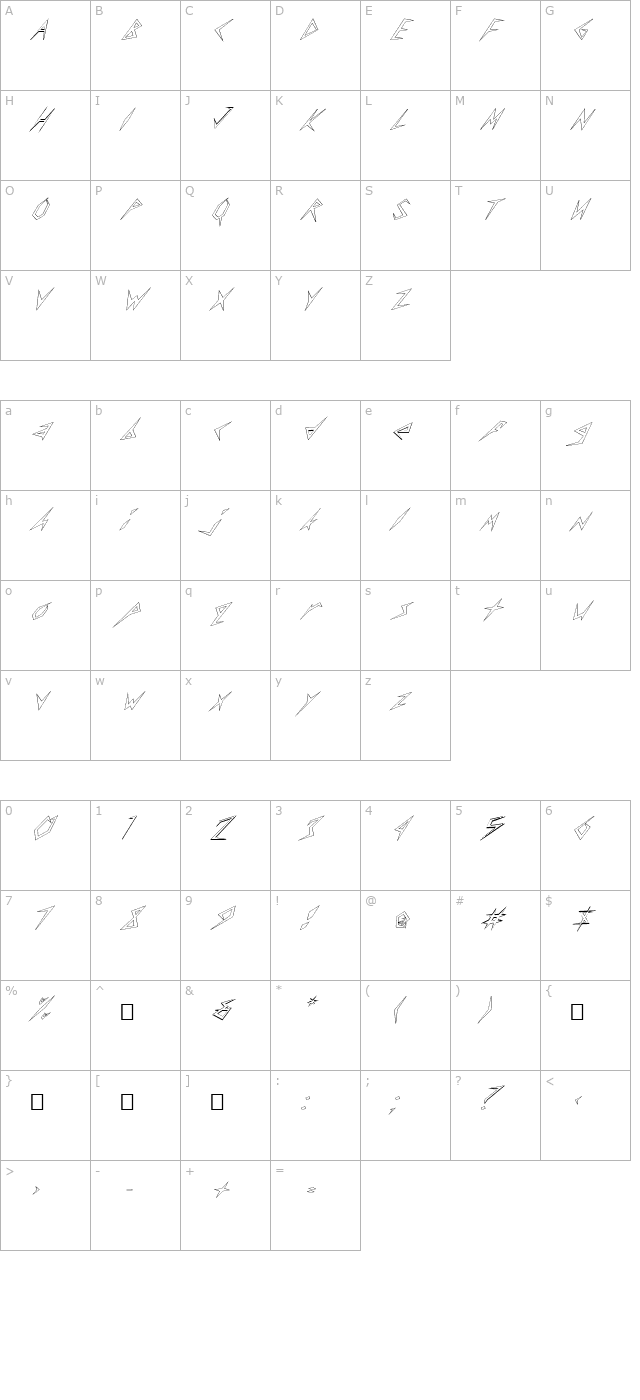 FZ UNIQUE 17 HOLLOW ITALIC character map
