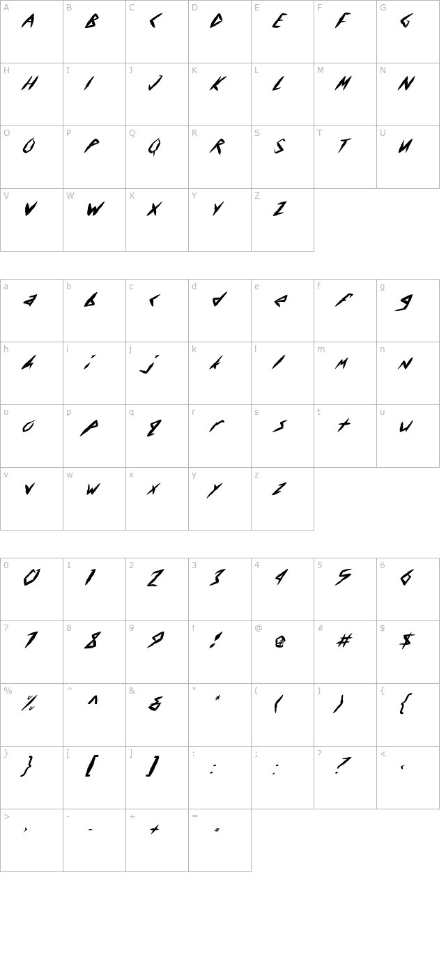FZ UNIQUE 17 MANGLED ITALIC Character Map