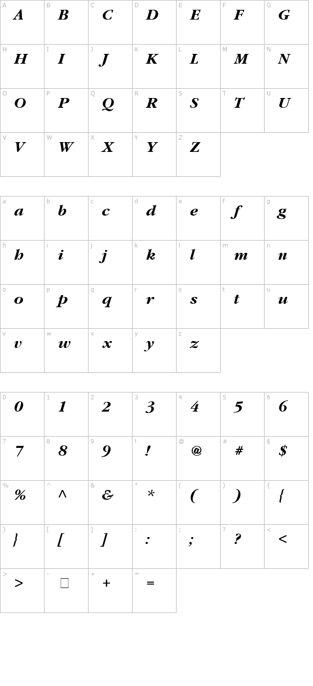 Garamond Semi Expanded SSi Bold Semi Expanded Italic Character Map
