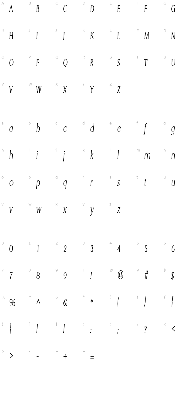 GriffonCondensedLight Italic character map