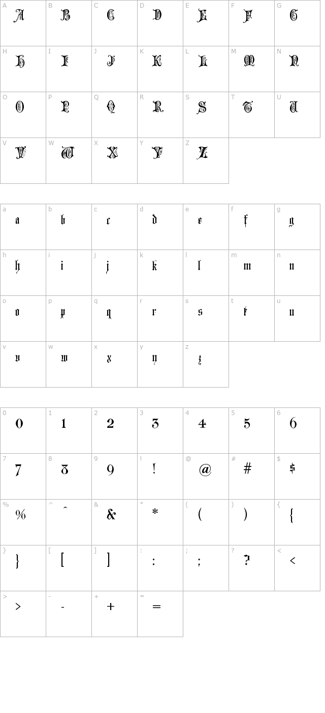 Grusskarten Gotisch Character Map