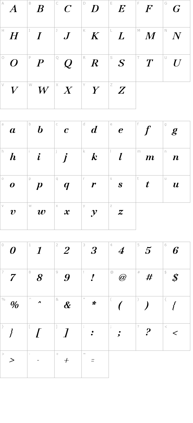 Jamille Bold Italic Character Map