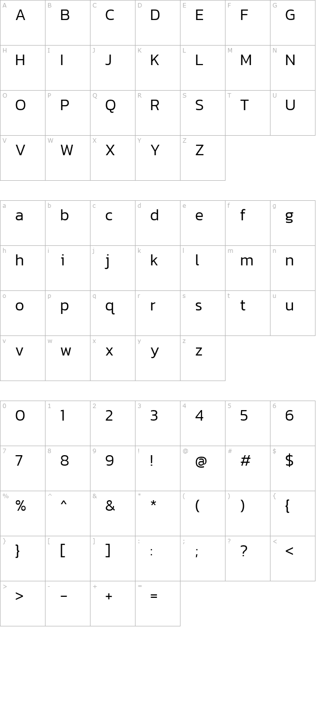 Kanit Light Character Map