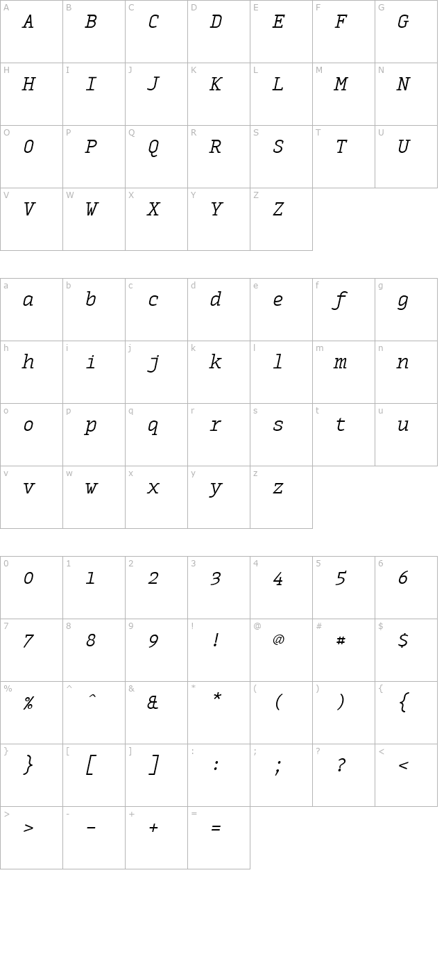 MonoxSerifLightItalic Character Map