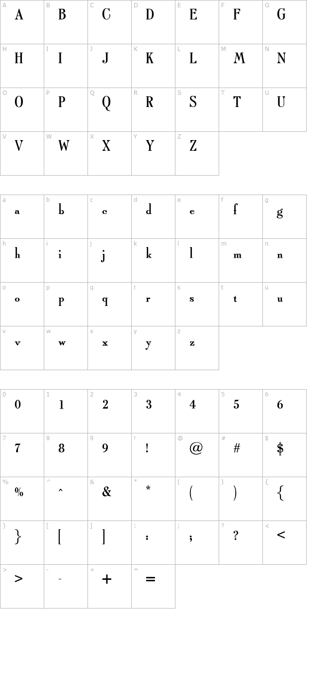 OPTITypoRoman character map