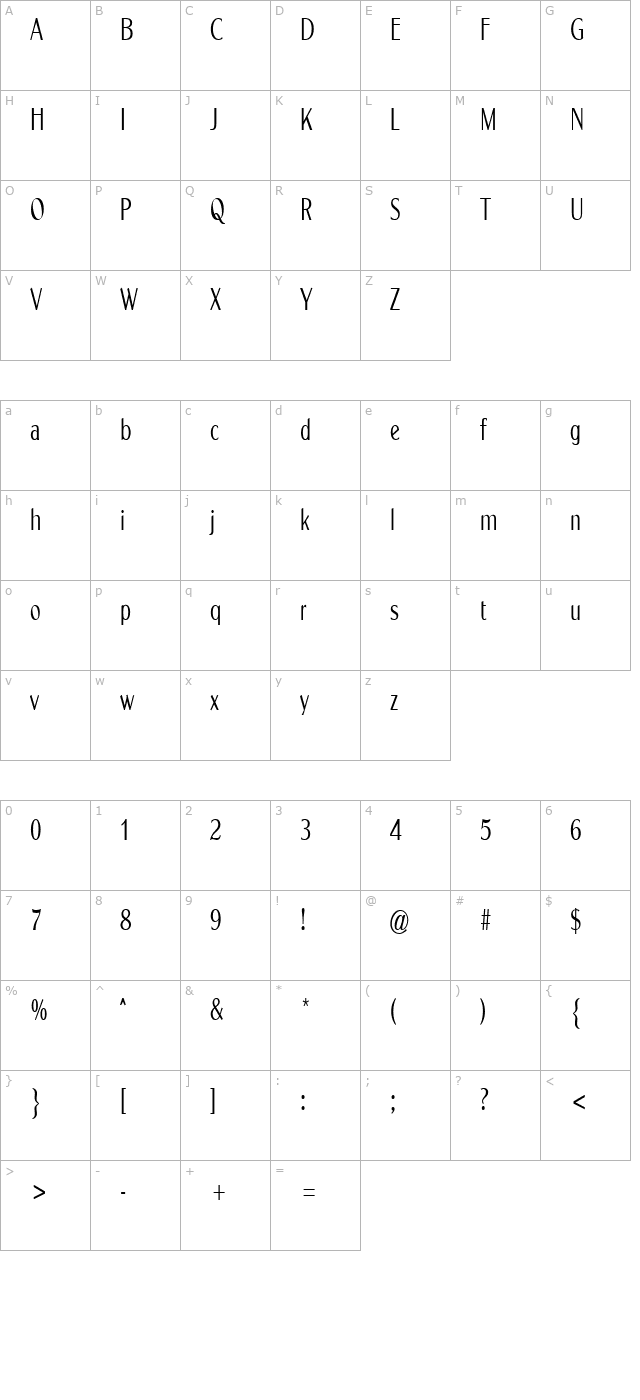 Sabina Regular Character Map