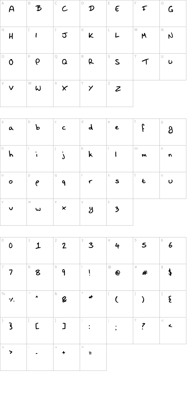 Shazi Hand Character Map
