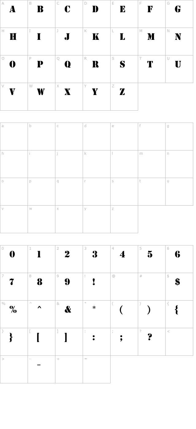 Stencil MN Character Map