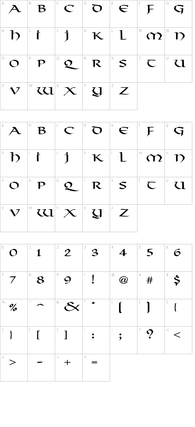 Valhalla Wide Normal character map